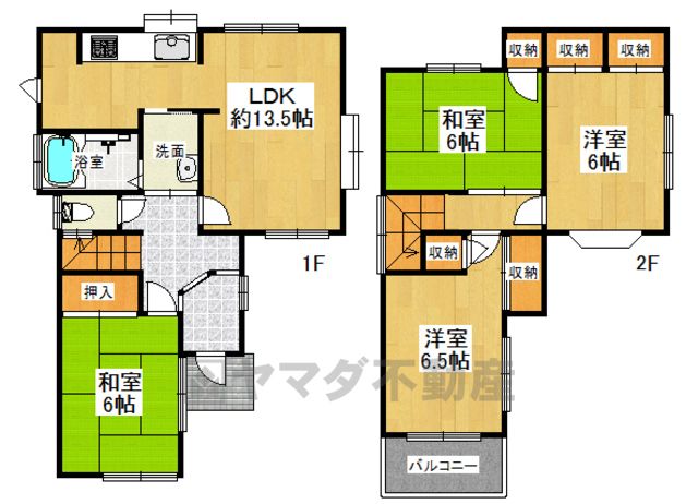 間取り詳細 | LDK13.5畳、和6畳、洋6畳、洋6.5畳、和6畳 | 都市計画 | 市街化区域 |